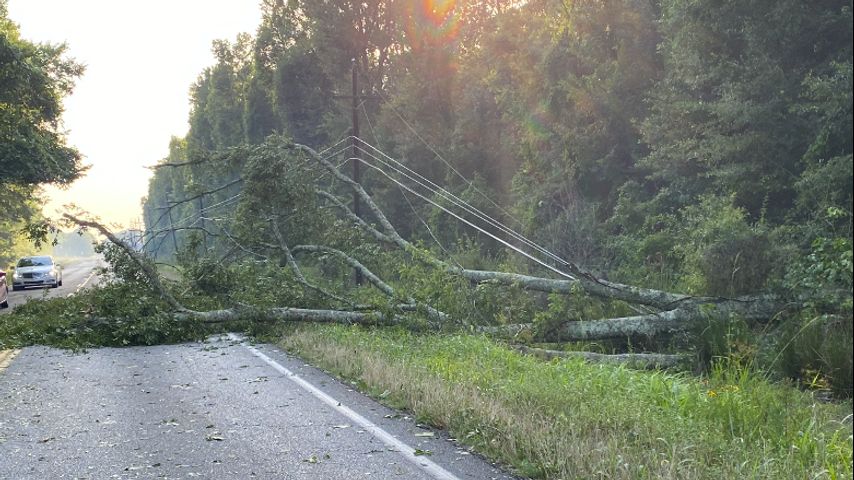 The National Weather Service reported that wind caused a tree to fall on a home on Clark Drive off of New Rafe Mayer Road. The NWS also reported that trees and power lines are down in Baker. No information on injuries has been reported.