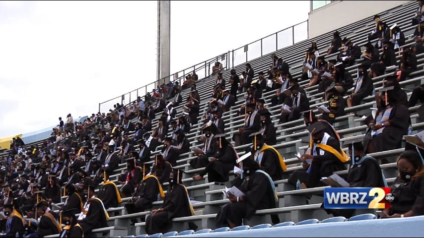 BATON ROUGE - Southern University's fall commencement ceremony was held outdoors at A.W. Mumford Football Stadium with strict safety guidelines in place due to COVID-19.