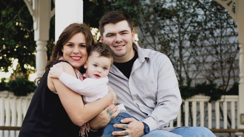 Jacob, Aly and their two-year-old son Zayden were in their pickup truck, parking at the restaurant. That's when they noticed a woman running through the parking lot.