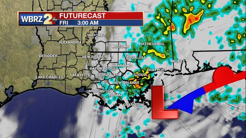 Today and Tonight: Expect clouds to build up through Thursday, which will prevent high temperatures from making it much farther than 60 degrees. Winds will be easterly at 5mph. A few showers will develop during the afternoon and evening hours, but most of the light activity will stay south and east of Baton Rouge. Overnight will be cloudy with isolated showers, especially east of Baton Rouge, and low temperatures in the upper 40s.