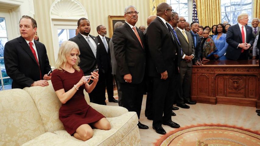 During the Washington Press Club Foundation Congressional Dinner, Richmond commented on a photo of Conway kneeling on the coach in the Oval Office, while Trump was meeting with a group of presidents from historically black universities and colleges.