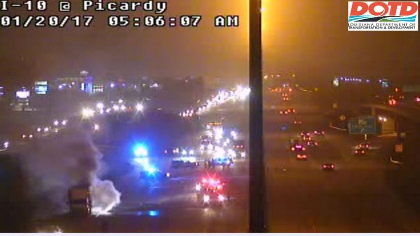 Around 5 a.m. Friday morning, a car on fire shut down I-10 westbound at Bluebonnet Boulevard.