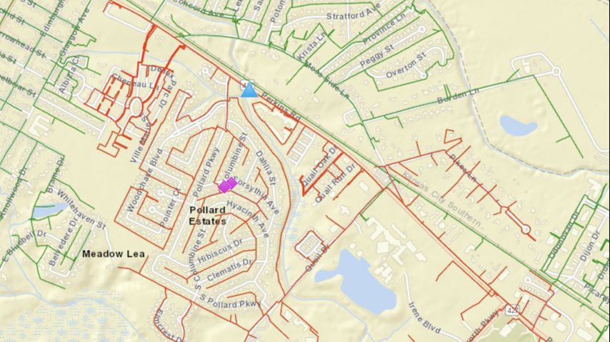 Another major outage stretched along Perkins Road from Essen Lane until shortly before College Drive.