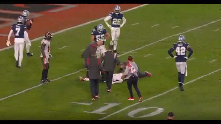 Gage, who plays at wide receiver for the Tampa Bay Buccaneers, was carted off after team personnel spent several minutes tending to him on the field. It came after a Dallas Cowboys defender collided with the back of Gage's helmet during a play.