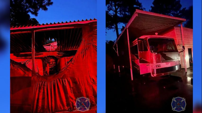 Fire officials said the flames were contained to the RV and the shed. No people were injured and no other structures were harmed.