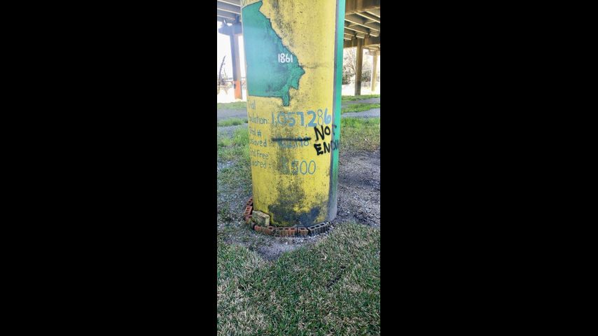 The painted beams with historical information were spray-painted with racist sentiments.