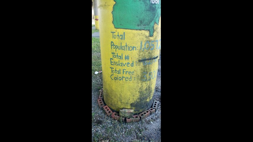 The exhibit shows the total population, the total number of enslaved people and the number freed from slavery.