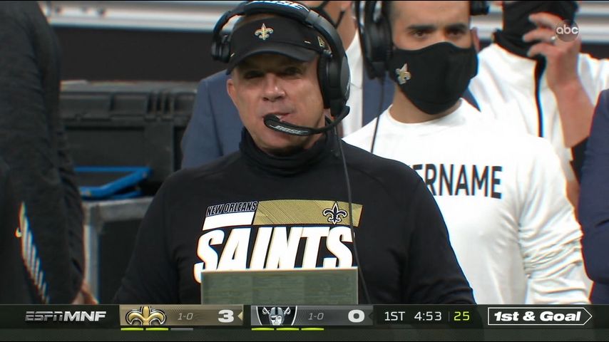 LAS VEGAS - Head coaches for the Saints and Raiders were fined, along with their respective teams, after they failed to properly wear face coverings throughout the duration of Monday night's game.