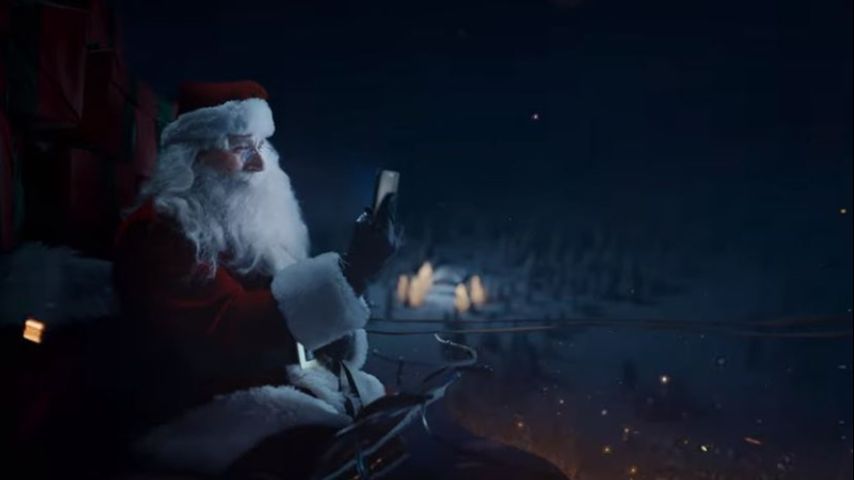 The commercial depicts a last-minute reworking of the traditional Christmas routine among Santa and his helpers.