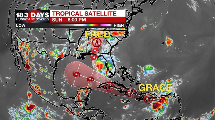 Sunday PM Forecast: Pop-up storms Monday, tracking Fred & Grace