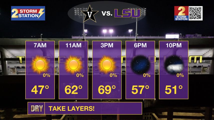 Saturday AM Forecast: layers needed for LSU game tonight, multiple fronts next week