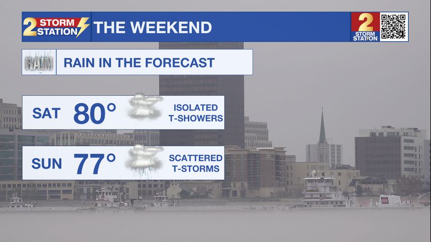 Today & Tonight: A slow-moving cold front will position itself across north Louisiana and Mississippi today. This is where the main areas of showers and thunderstorms will focus, well north and northwest of the Capital Area. Although clouds will stick around throughout the day, a few breaks in the clouds is possible. Any rain will stay limited across southeast Louisiana. Still, isolated showers will be possible. Lighting can not be ruled out with this activity. Temperature wise, it will be another warm day as highs could hit 80 degrees. Tonight, lows will bottom out around 65 degrees under cloudy skies. Isolated showers, and thunderstorms will be possible.