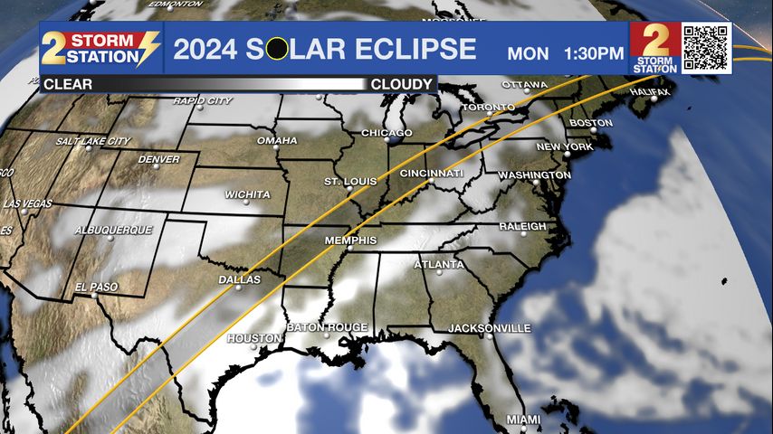 Monday still looks mainly cloudy with isolated showers and storms during the solar eclipse (approx. Noon to 3 p.m.). While clouds appear to block the majority of the event, there could be a few cloud breaks from time to time. We suggest having your eclipse glasses ready to go in case clouds briefly cooperate so you can safety take a peek at the eclipse.