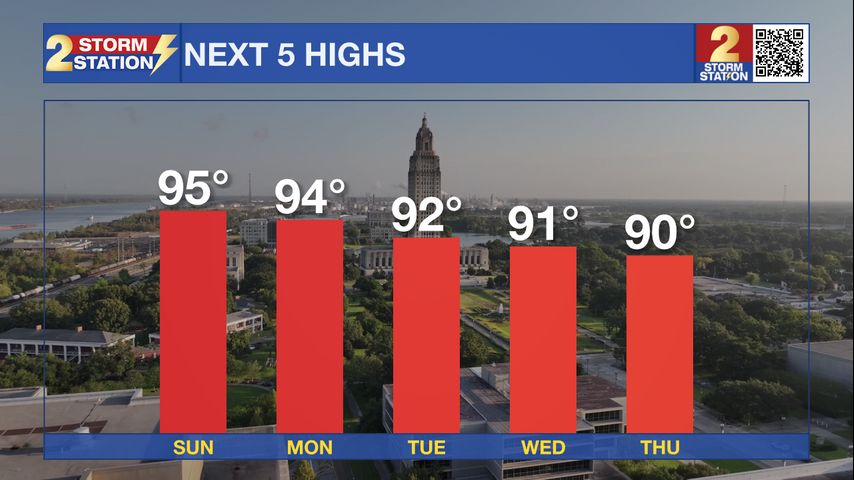 Tonight & Tomorrow: Any clouds that we saw today we quickly clear out as we head into the overnight hours. This will allow our lows to get into the lower 70's. A few areas of patchy fog cannot be ruled out closer to daybreak. It will be rinse and repeat in the world of weather for tomorrow. Highs will get into the mid 90's, with feels like temperatures 100°+. Sunscreen will be a must if outside for any extended period. Also make sure to hydrate frequently.