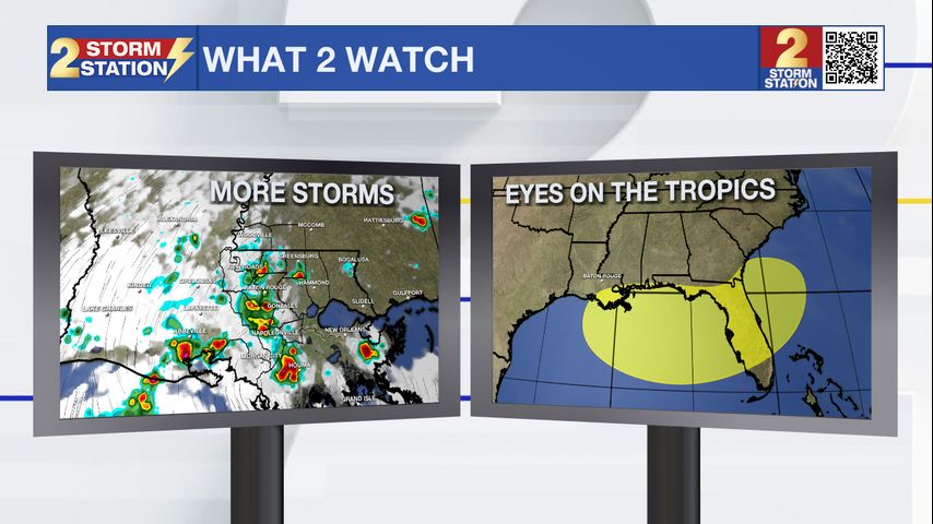 A similar pattern to today will setup Sunday, bringing scattered storms. Looking ahead to the end of the week, a tropical disturbance could create a very wet pattern.
