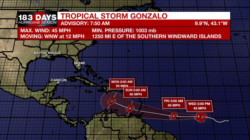 Tropical Depression Seven has intensified to reach 45mph wind speeds and picked up the name Gonzalo.