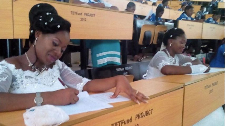 NIGERIA - Two women had no choice but to wear their wedding dresses to class thanks to a scheduling clash that put their final college exam on the same day as their nuptials.