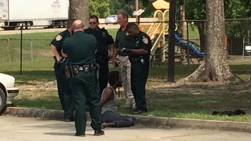 A picture taken by a WBRZ photographer showed a man surrounded by five sheriff's deputies.