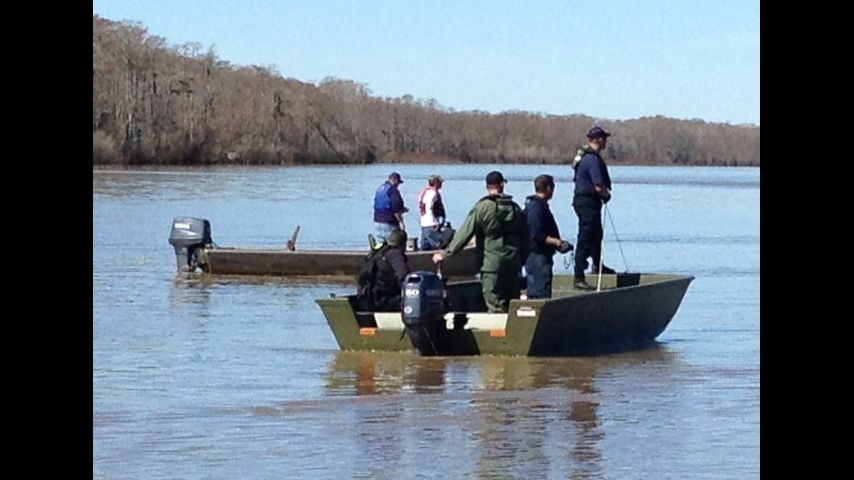 Teams from five different agencies used divers and SONAR-equipped boats in their search for Jacob Lewis, 28, who went into the river last night while trying to get his boat onto a trailer. His wife said she saw him in the river calling for help, then he disappeared.