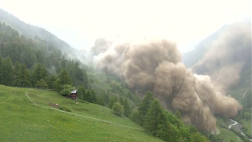 The regional government said in a statement that a large chunk of the Birch Glacier above the village had broken off, causing the landslide, which also buried the nearby Lonza River bed, raising the possibility of dammed water flows.