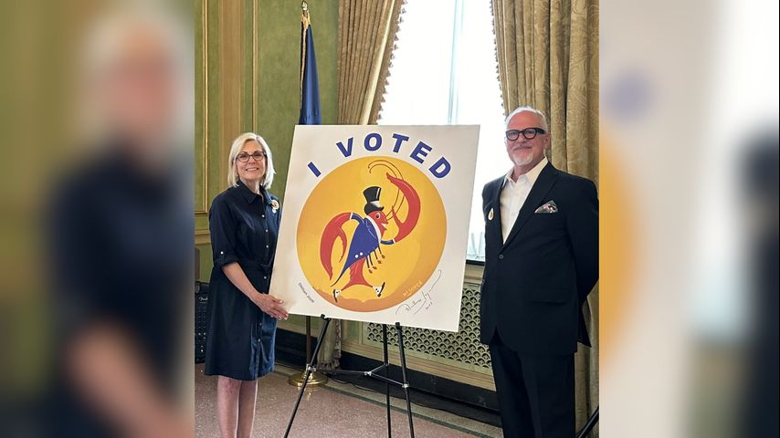 BATON ROUGE — The Secretary of State's office revealed a new "I Voted" sticker designed by an Academy Award-winning concept artist.