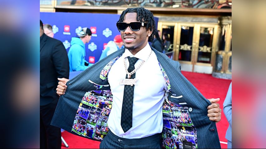 Highlights of Nabers' time at LSU are stitched into his suit jacket, as seen in a picture from LSU Football's Twitter. Nabers is also rocking sunglasses and a chain that says "LEEK".
