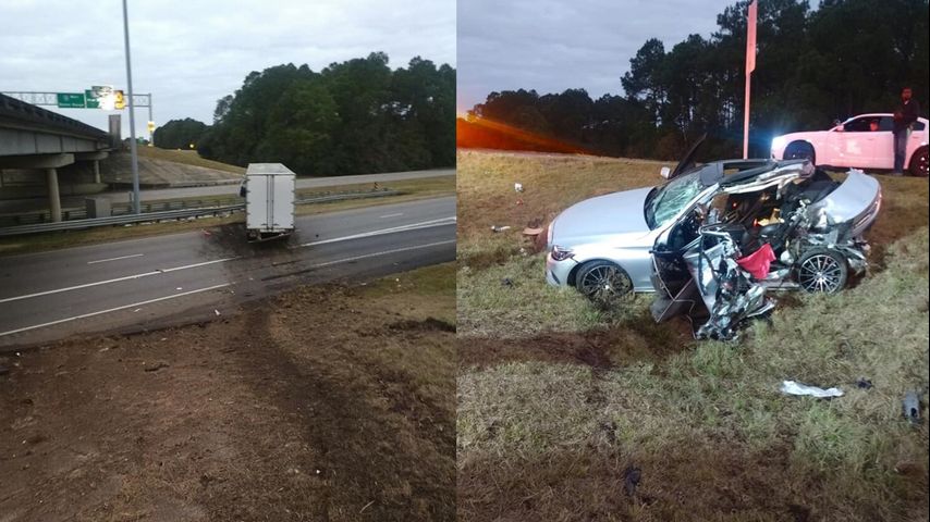 Semi slides off I-12, crushing car in Thanksgiving morning crash
