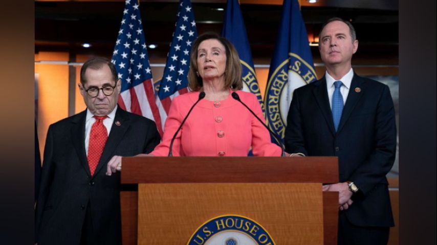 Schiff read the articles of impeachment, which labeled the President "a threat to national security" and deemed his conduct as warranting "removal from office."