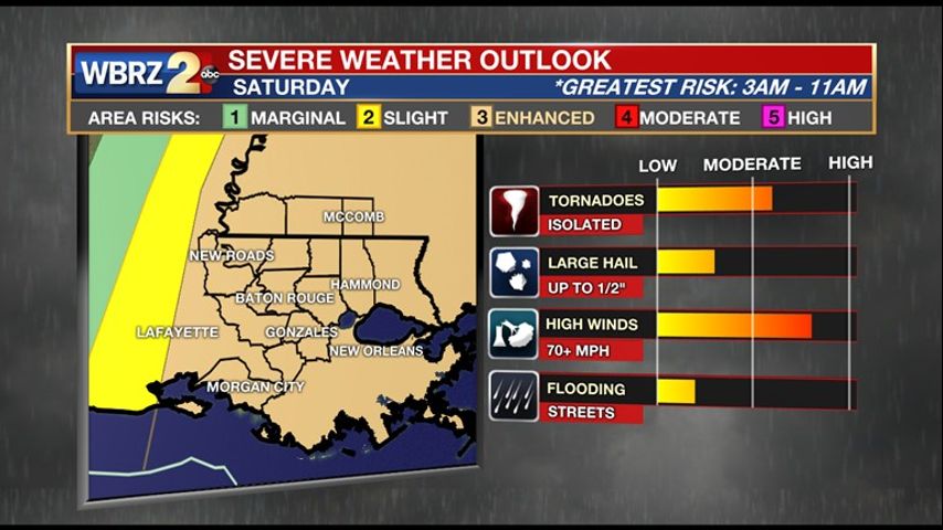 The WBRZ Weather Team is here for you, on every platform. Your weather updates can be found on News 2, and the WBRZ WX App. on Apple and Android devices. Follow WBRZ Weather on Facebook and Twitter for even more weather updates while you are on the go.