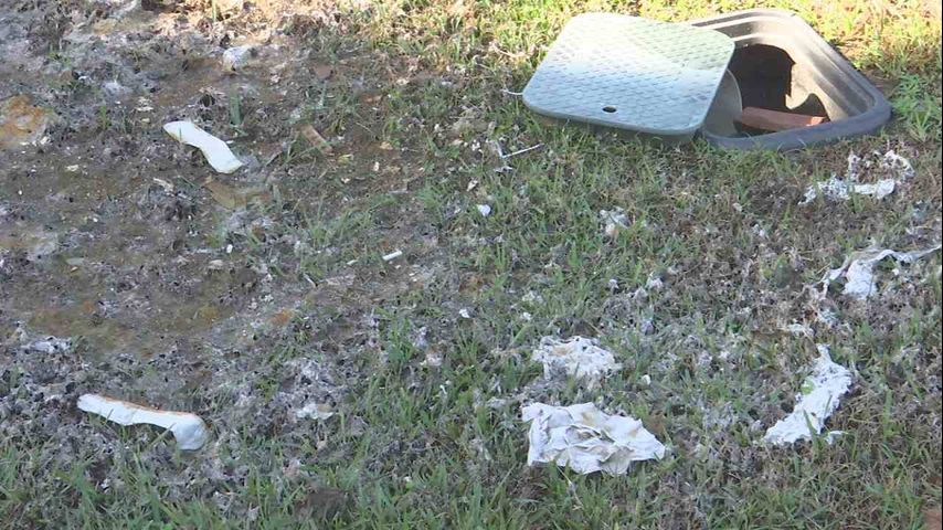"This is all sewage," said Robinson. "Toilet paper, tampons, everything's coming up out of the sewer."