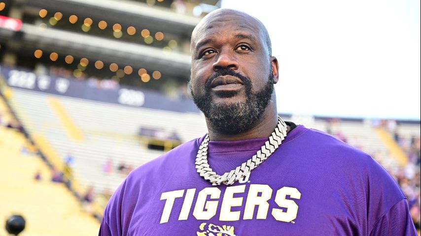 BATON ROUGE - LSU legend Shaquille O'Neal shook hands with LSU head football coach Brian Kelly before the Tigers take on the Crimson Tide in Death Valley.