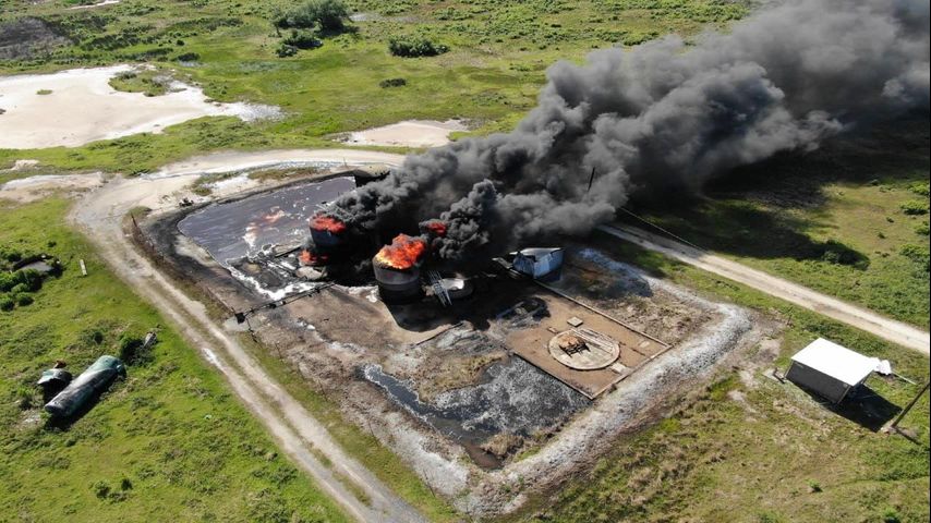 Shelter in place order lifted for Hackberry; two crude oil tanks on fire