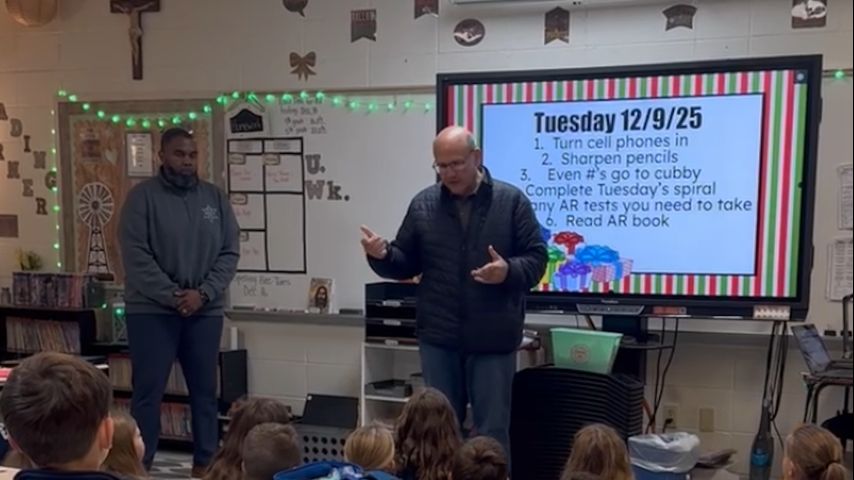 Theoretically, in 12 years, every student will have received a gift from the sheriff and his deputies. On Tuesday, they visited St. John School and Iberville Elementary School