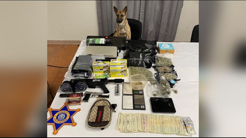 A search of Williams's residence uncovered "approximately 5.6 pounds of high-grade marijuana, two firearms, and various items commonly associated with the sale of illegal narcotics," according to the sheriff's office.