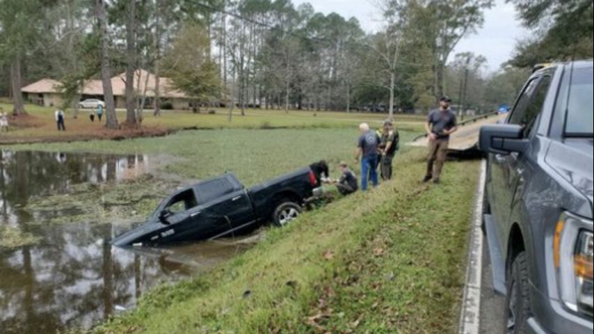 BATON ROUGE - Deputies responded to reports of a truck that had crashed into a pond in Baton Rouge Monday morning.