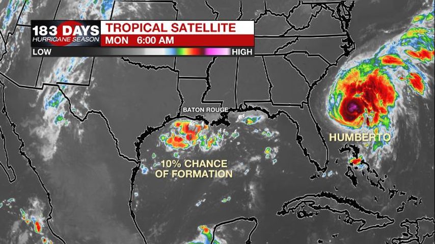 The Tropics: Hurricane Humberto continues to strengthen with large swells affecting much of the southeastern United States coastline. As of 7am Monday, maximum sustained winds were 85mph with a minimum central pressure of 980mb. Humberto was moving east, northeast at 5mph and is expected to accelerate northeastward through the end of the week. Bermuda will need to monitor the progress of this storm for potential impacts on Wednesday and Thursday.