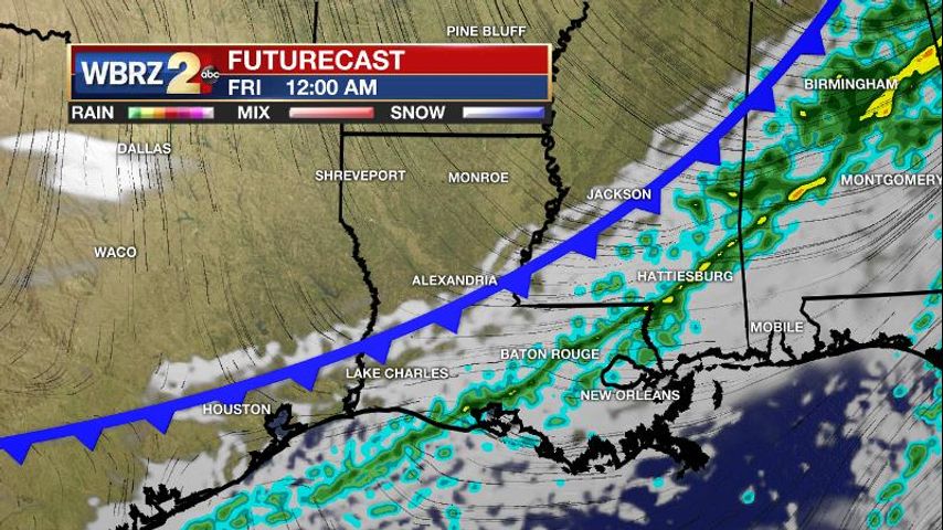 After That: A cold front will enter the region on Thursday night. A broken line of showers is anticipated into Friday morning. At that time, the cold front will settle in the northern Gulf of Mexico. However, it will remain close enough to the area for a lot of cloud cover to persist and some showers to hang on, especially south of I-10, through Friday. In fact, there is a chance that these dreary conditions are maintained into Saturday as well. Bigger changes have been made to the latter portion of the forecast.
