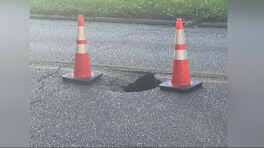 Sinkhole forms in middle of road on LSU Avenue and Highland Road