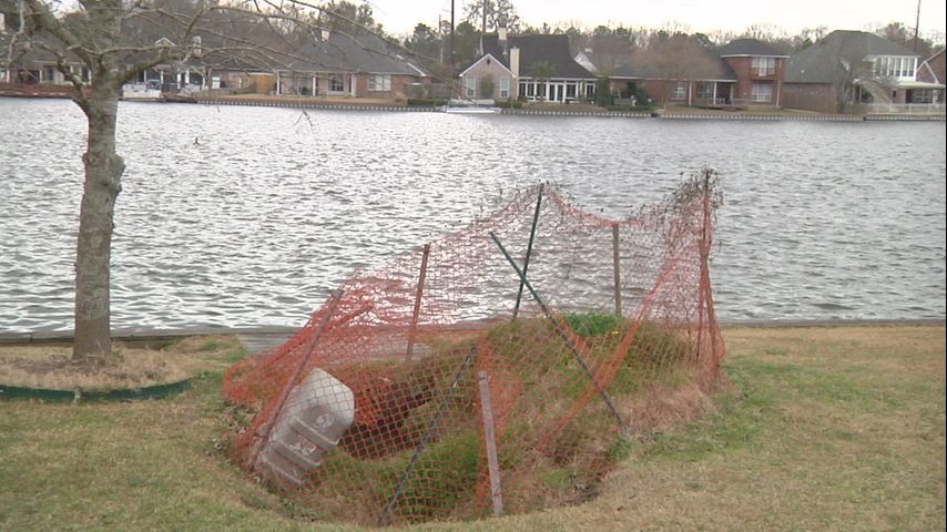 The parish says the Azalea Lake cave-in repairs are outside the capacity of the Department of Maintenance without the lake being lowered. It has hired an engineering firm to draft up a plan for repairs. The City-Parish says it must be prudent on behalf of taxpayers to find the most cost-efficient repair option. The parish is concerned that the current lake water level, which it says is managed by the homeowners, greatly increases the cost of the maintenance repairs.