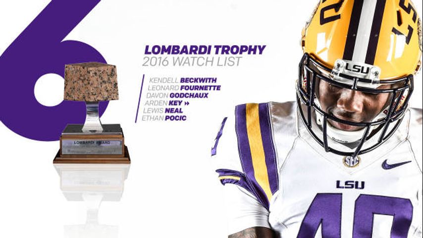 According to LSU Athletics, Kendell Beckwith, Leonard Fournette, Davon Godchaux, Arden Key, Lewis Neal and Ethan Pocic made the final list. Those players were among 158 candidates to make the initial list for the award.