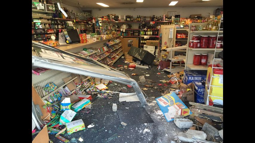 When officers arrived on scene, they found the front of the store destroyed, but the vehicle was no longer there. Officers reviewed the store's surveillance video to find that a gold Ford Explorer purposely drove through the front of the store, reversed and then stopped in the parking lot. The man then ran into the store and seconds later ran out with bottles of alcohol.