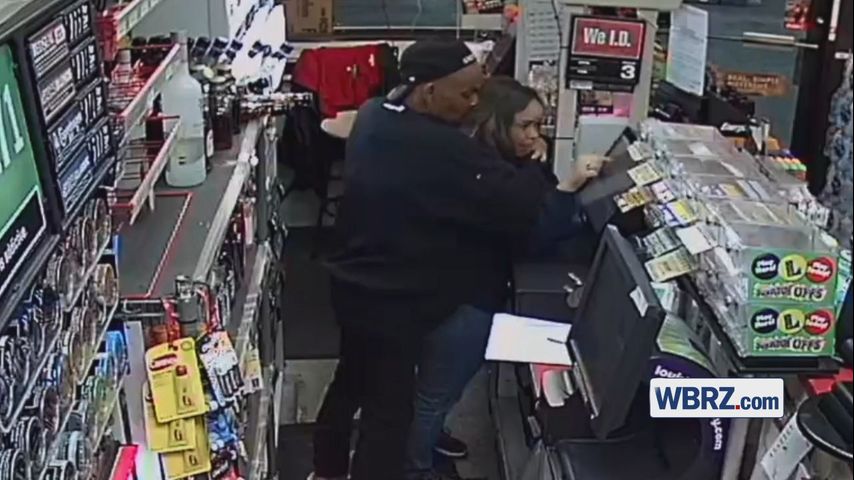 Video shows the man walking into the store and pinning the clerk against the counter, forcing her to open the register. The suspect takes the cash, as well as several packs of Kool cigarettes, and flees the scene.