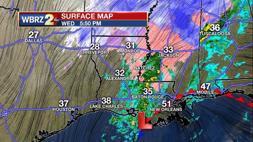 The Explanation: A warm front draped across south Louisiana, south of I-10, will not make much inland progress tonight. Therefore, with northerly winds continuing, a very cold rain and light wintry mix will fall through midnight for area north and west of Baton Rouge. These locations could also dip to freezing overnight allowing for some patchy ice formation before daybreak Thursday. In the Metro Area, chilly rain will fall before tapering late and this will eliminate any remaining ice. Closer to the Louisiana coast, some thunderstorms could be in the mix with the same timeline. The surface low responsible for the active weather will pull away to the northeast on Thursday ending the precipitation. However, the main upper level trough driving this whole mess will hold back to the west on Thursday. For this reason, northerly winds will continue and a very low cloud deck could be trapped beneath the pool of cold air aloft. Gradual clearing will come later in the day but it will not be enough to warm most locations beyond 40 degrees or so. Thermometers will dip back into the upper 20s on Friday morning. The trough will push east then and allow ample sunshine to close the week as highs get well past 40 degrees. One more very cold night is expected into Saturday before the upper level pattern calms over the weekend. High temperatures will increase 10 degrees each day this weekend, making it into the 60s on Sunday. Then, a weak, Pacific-based cold front will send a few showers our way Sunday night into Monday. After some showers, thermometers will barely take a hit, remaining near seasonal averages.