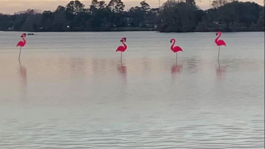 "The lakes have been flocked! We only put a few in the lakes to be adopted. However, for a $100 donation to Spanish Town Mardi Gras, you will get an official Spanish Town flamingo and a commemorative 25th year poster," organizers posted on Facebook.