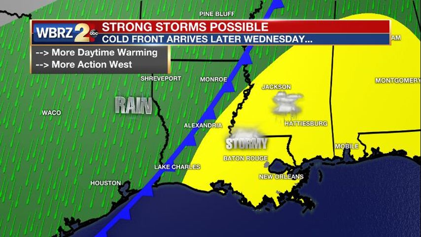 Some showers Tuesday, a few strong storms in the mix Wednesday