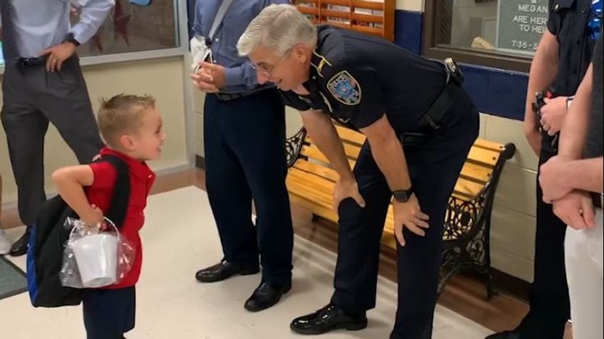 SLIDELL - Police in Slidell surprised the son of a fallen officer on his first day of kindergarten, and it's the most heartwarming thing you'll see all week.