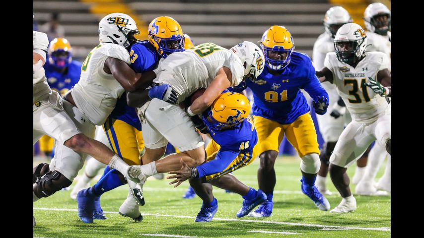 After a rough first half, the Southeastern defense held McNeese scoreless for the final 22 minutes of the contest. Daniels and Jack Henderson led SLU with 10 tackles each. Daniels and Donniel Ward-Magee each picked off passes, while Daniels, Arlen Williams, Herman Christophe, Heath Stephen and Garrett Crawford each had sacks for the Lions.