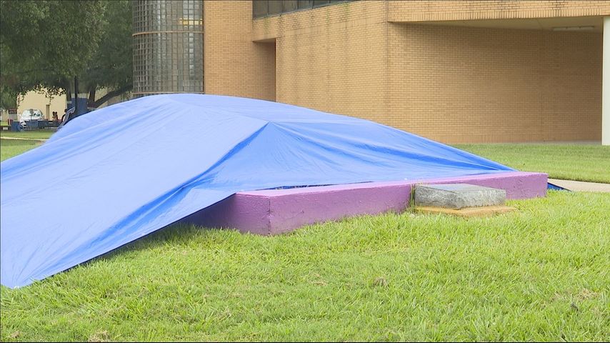Southern said all identifiable markers of the fraternity must be removed from campus; On Thursday, a tarp covered the fraternity's plot.