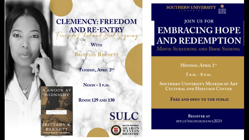 BATON ROUGE — The Southern University Law Center will host a number of "second chance" events in April to help people being released from the prison system adjust to life on the outside.