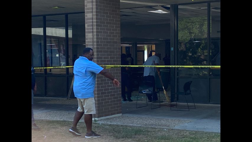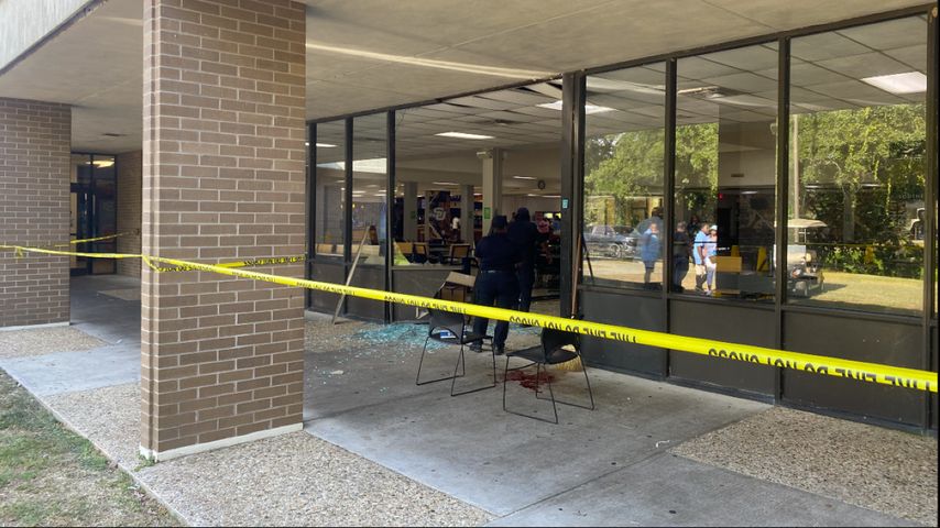The accident happened shortly before 5 p.m. WBRZ was on the scene where two floor-to-ceiling window panes were broken. Employees had brooms and were clearing the glass.